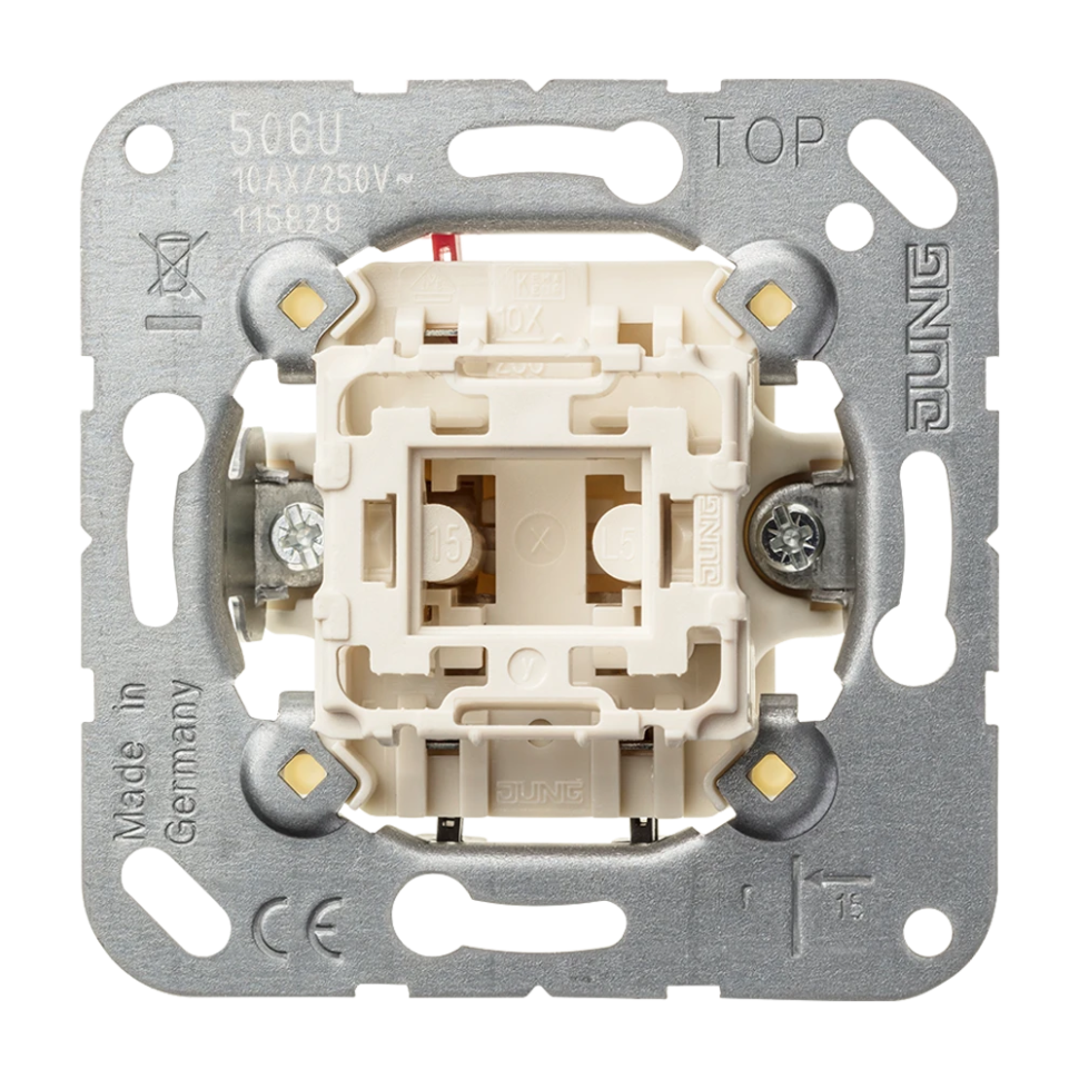 506U 1-клавишный выключатель 10AX 250V универсальный ( JUNG, c 2-х мест, механизм без панели )