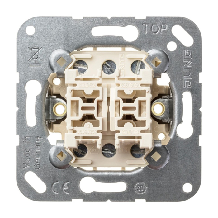 509U 2-клавишный выключатель 10AХ 250V универсальный (JUNG, c 2-х мест, механизм без панели )