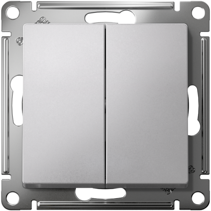 Механизм Systeme Electric (ранее Schneider Electric) серии AtlasDesign в цвете алюминий выключателя 2-клавишного подходит для сетей 250 В, на ток 10 А. Двухклавишный выключатель позволяет управлять двумя источниками света с одной точки. Лицевые детали из качественного ABS-пластика, устойчивого к царапинам и УФ-излучению. Усиленные прямые монтажные лапки для лучшей фиксации механизма в монтажной коробке.