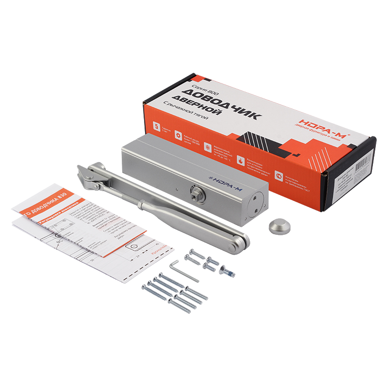 830 ВС Доводчик НОРА-М (от 40 до 150 кг) (серебро) морозостойкий с ветровым тормозом
