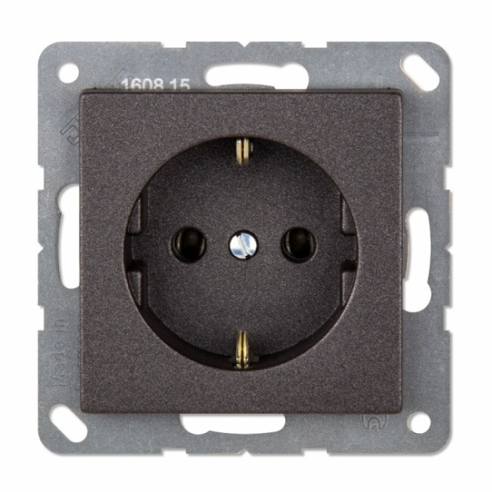 Двухполюсная розетка с заземлением (16A, 250В) в цвете антрацит, оснащённая автоматическими зажимами для удобного и быстрого монтажа. Идеально подойдет для бытового и офисного применения, обеспечивая надежное подключение электроприборов.