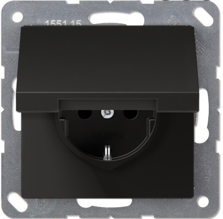 EP1420KLSWM Штепсельная розетка SCHUKO 16A 250V, с заз. ( Jung ECO profi , c крышкой, мат. черн.)