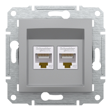Asfora двойная розетка компьютерная RJ45 Cat.5e UTP, клеммы IDC, без рамки, алюминий EPH4400161