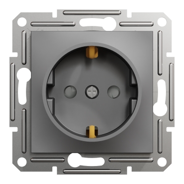 Asfora розетка с защитными шторками, с заземлением, без рамки, 16 А, винтовой, АНТРАЦИТ (EPH2900271)