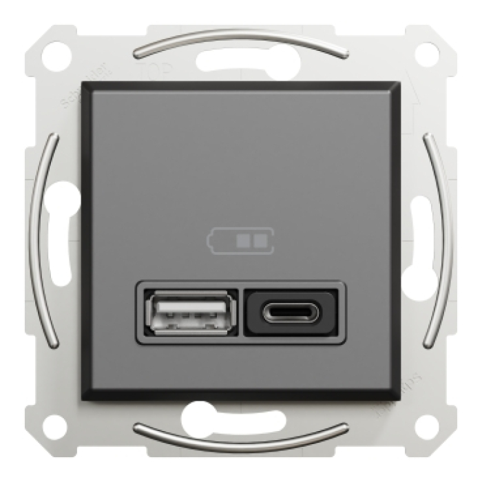 Asfora двойное зарядное устройство USB, Type A+C, 45 Вт, без рамки, АНТРАЦИТ EPH2700471